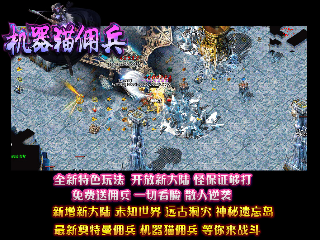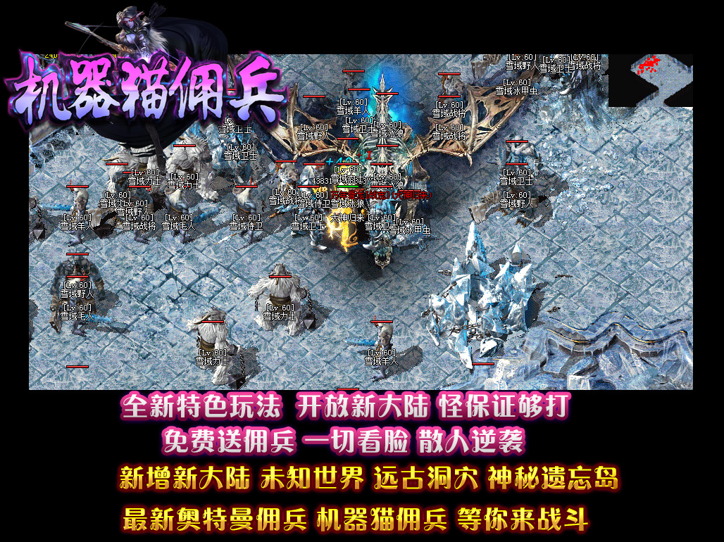 - 【机器猫佣兵】 散人有时间一样可以到终极,本服的装备是全爆的,BOSS全部掉落!花100当爷,一切靠打